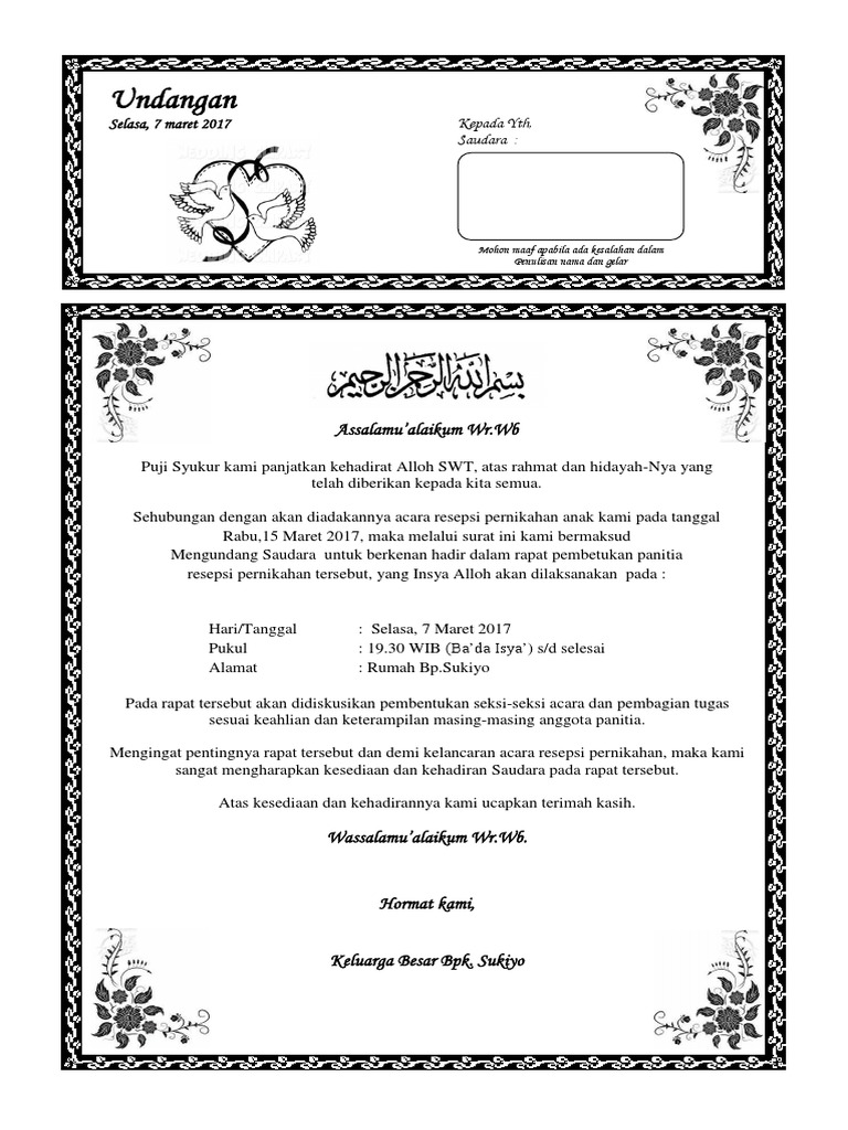 Model undangan madura 2 doc 33. Nah itulah 68+ contoh undangan pernikahan islami pdf gratis terbaik yang kami posting dengan kata kunci keywords pada kesempatan berbahagia ini, kami berharap, semua gambar diatas bisa membantu anda. Demikianlah pembahasan yang dapat kami sampaikan mengenai download undangan pembentukan panitia pernikahan di word. Contoh surat undangan resmi dinas, pernikahan, aqiqah, arisan. Contoh undangan pernikahan file pdf terbarugratis